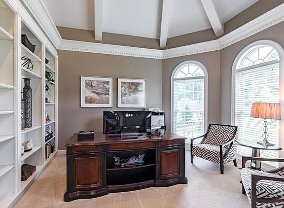 This meticulously cared for 1.5 story home shows pride of ownership throughout. Open the door to be greeted by wood floors, curved staircase w/ wrought iron spindles & arched openings to the dining rm & office both w/ bay windows. Gorgeous 2 story great rm features 2 custom chandeliers, columns, fireplace & wall of windows. The spectacular kitchen has been completely updated to include Cambria countertops & custom tile backsplash, center island, Bosch double ovens, 5 burner gas cooktop, walk-in pantry, butlers pantry & adjoins the breakfast rm w/ vaulted ceiling & planning desk. Master suite w/ his & her closets & luxury bathrm features his & her vanities, jacuzzi tub w/ columns, walk-in shower & coffered ceiling. 3 addtl bedrms & 2 full baths on UL. Finished, walk-out, LL w/ family rm, rec rm, exercise rm, media rm (includes furniture & equipment), walk-behind wet bar & full bath. Addtl features include Saltwater pool, patio, updated roof & HVAC, 3 car side entry garage & more!