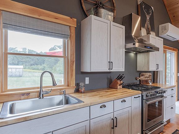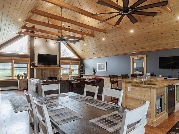 Spacious NEW BUILD Ranch on 6.2 acres with loads of possibilites! This beautifully built 4-bedroom, 3-bath ranch offers the perfect blend of modern comfort and country living. As you step in off the front porch, the open-concept great room will take your breath away with its bright and open layout and soaring ceilings. A large pine island with wet bar and Harmon Pellet Stove hearth are the stars of the space, creating a cozy feel you will just want to sit and enjoy. The primary bedroom suite includes a private bath with luxury, tiled shower. Two additional bedrooms are also conveniently located on the first floor with a shared bathroom in between. You will be delighted to find more bedrooms and a large bonus room in the basement. The basement is heated with radiant floors while the first floor has baseboard heat and a Mini Split that provides Central AC to the whole home. There is a brand new, composite deck overlooking your private, quiet, fenced-in yard. Abundant outbuildings provide endless options for farm animals, recreation, work shop, living space and more! Garage and barn each have their own 100 Amp service. While the home is nearly complete, a few finishing touches will allow you to add your own style. Materials for the hearth, trim and doors will be left for the new owner. This property is a rare opportunity for those seeking space, versatility, quality and privacy!