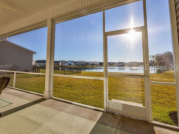Do not let the address fool you! This home is actually located in Okatie, a suburb of Bluffton. Situated in the back of this smaller community in a cul-de-sac, this home offers peaceful lagoon/lake views. Sit on the expansive screened lanai and sip on your morning coffee while watching the sunrise. The view carries into the great room, and spacious primary suite. Natural light floods the home through the transom windows and the 10' ceilings make the home feel open. Extensive upgrades include quartz countertops throughout, custom window treatments, wainscoting designed millwork, 42" kitchen cabinets with pull-outs, custom interior paint, zero entry walk-in shower, finished garage, floor receptacle in great room for electric recliner and/or lamps, and 6" gutters. This home lives like a lake retreat. Hearthstone Lakes has a low HOA but offers larger homesites, sidewalks on both sides of the street, cul-de-sacs for safe biking or walking, community pool, pavilion, fitness center, playground, and open space. Boat/RV storage is also available. Owner is licensed real estate agent.