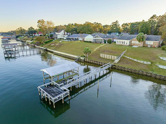Welcome home to this LAKEFRONT ranch style home located in the GATED GOLF COURSE COMMUNITY of Santee Cooper Resort! With beautiful walls of windows overlooking the water, your very own dock and lift and plenty of entertaining space, you can easily enjoy your very own slice of heaven right on Lake Marion! As soon as you walk through the beautiful glass double doors, the sunlight welcomes you through to the family room with a view overlooking the lake, its cozy wood burning fireplace, hardwood flooring and beamed ceilings that really make this room breathtaking! The large eat-in kitchen can be found directly off the family room and boasts a substantial breakfast nook, center island, plenty of cabinet and counter space, as well as a pantry. The laundry room is conveniently located off theand has plenty of storage and a utility sink. Also off of the family room, you will find the spacious sunroom that gives you the perfect place to watch the sunrise and sunset with a 180 degree view of the lake. This master bedroom has its own wall of windows, as well as a walk in closet and en-suite bath! This home also boasts a second master bedroom with its very own glamorous view of lake Marion and en-suite bath for the ultimate privacy when entertaining a guest. The additional two bedrooms are spacious and include their own full Jack and Jill bath. The oversized two car garage with ultra high ceilings is complete with a storage area that includes built in cabinets, shelving and a work bench. After enjoying your day out on the water, you can clean up before coming inside with the full bath conveniently located towards the back of the home with its own outside entrance. The neighborhood itself also has its own golf course, pool, tennis court and community center and this home is conveniently located minutes to I26 and I95 to make commuting anywhere easy!