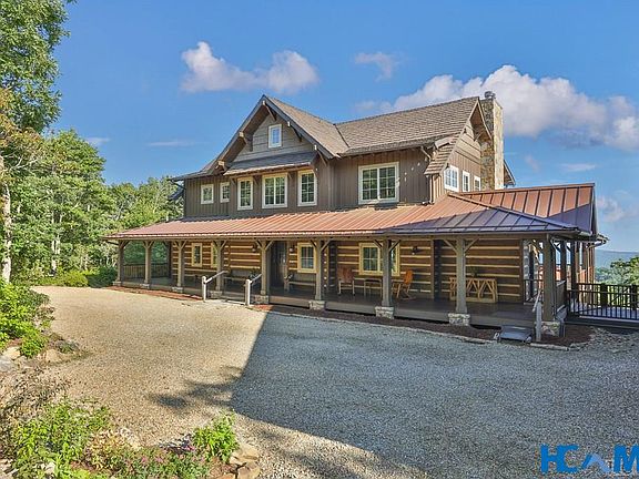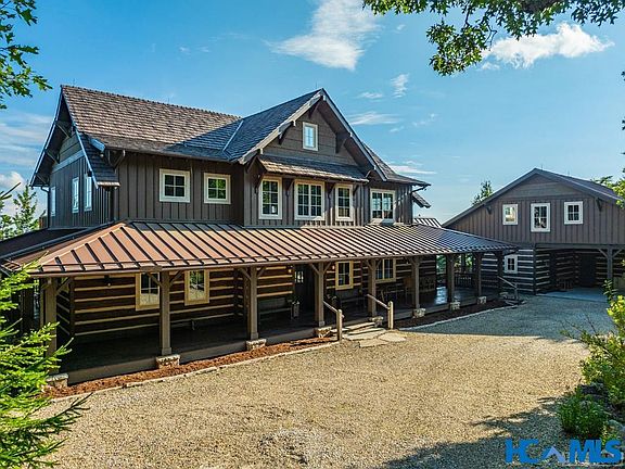 Perched high atop the mountains, overlooking the serene Lonesome Valley, this majestic mountain lodge offers breathtaking long-range views. Custom built by a single family, it evokes the charm and grandeur of John Dutton's home from Yellowstone. As you approach, the flat courtyard invites you to step onto the expansive front porch and enter through the solid front doors. The heart of the lodge features a warm and inviting sitting area in front of a grand stone fireplace, seamlessly connected to the dining room and a chef's dream kitchen. Step outside to the covered deck, which provides ample seating and a large Carolina room on one side, complete with its own cozy stone fireplace—perfect for gatherings. The primary suite, located on the main level, boasts luxurious his-and-her baths and spacious closets. Accommodate family and friends with ease by sending them upstairs, where they can choose from three sleeping areas and a dedicated office, or to the charming guest house, which includes a welcoming sitting room, two additional sleeping rooms, a kitchenette, and a media/game room. Situated close to Panthertown National Park, this lodge is an outdoor enthusiast's dream, ideal for hiking and horseback riding. With walking trails, gardening areas, a lookout deck, and plenty of open space for kids and pets to play, this property truly embodies the essence of a family retreat. Experience the perfect blend of luxury and nature in this extraordinary mountain haven.