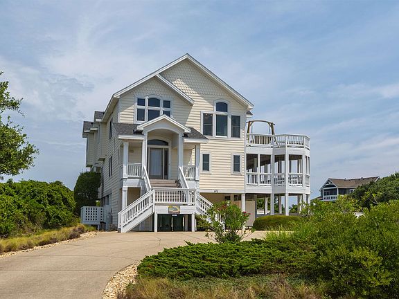 Welcome to 473 Spindrift Trail, a rare opportunity for ownership in the private gated Spindrift community of Corolla, NC, on a spacious .92 acre parcel 2 lots from the oceanfront (3rd row), boasting incredible views of the ocean and direct beach access steps away. Being sold by its original owners, this 8-bedroom estate seamlessly blends coastal comfort with modern day amenities designed to host large groups of friends and family. A thoughtfully designed floor plan with over 4,200 sq ft of living space features a sun-filled and open concept living room with a gas fireplace, built-in shelving, oversized windows showcasing the almost unobstructed ocean views, and direct access onto the spacious decks surrounding. Added privacy can be noted north with 60+ acres of not yet developed land and lush green vegetation in the rear. Enjoy hosting with ease from the well stocked kitchen with ample island and dining seating and dual kitchen appliances. A half bath and primary en suite with direct deck access, dual vanities, a jetted tub and standalone shower complete this floor. Rest peacefully after time spent soaking up the sun in one of the five bedrooms located on the second floor. A bright custom tiled foyer entry welcomes and leads you to three en suites which all offer direct deck access, and two bedrooms with a full shared bath, providing plenty of room and privacy for everyone! The ground floor is the perfect area for kids and adults alike to kick back and relax. A media room with a kitchenette including a convection oven, refrigerator and dishwasher, wraparound sectional seating, two bedrooms with dual bunk sets, and updated full bath, large laundry room with 2 washers and 2 dryers, storage, and the convenience of direct access out to the home's exterior amenities. Expansive outdoor living spaces invite you to soak up the warm ocean breeze while enjoying the large private heated pool and spacious pool deck (completely resurfaced in 2018), set-in spa, exterior wet bar and grilling station, sink, island seating, outdoor shower, volleyball court, basketball, sun & shaded decks, and direct access to the beach just steps away! Take advantage of this homes prime location in the sought after oceanside Spindrift community with gated access, community beach accesses and tennis courts, along with close proximity to local boutiques, dining, and grocery shopping just a short walk or bike ride away.