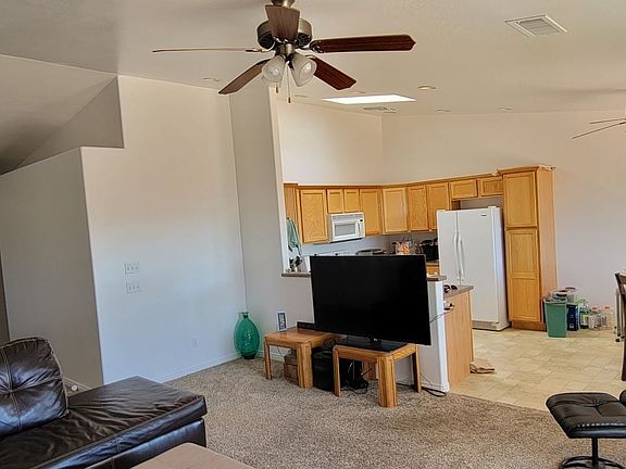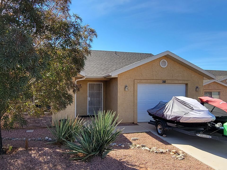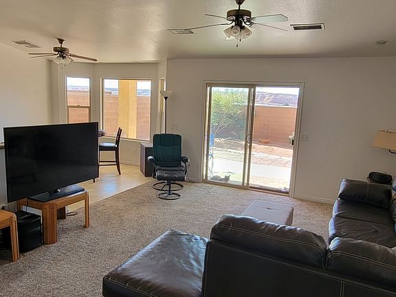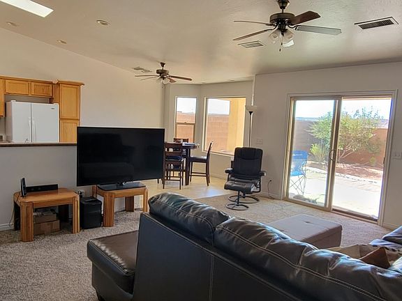 Looking for a home or investment property - this 1375 sf 3 bedroom, 1 3/4 bath home boasts a bright and airy open floor plan - the living room, dining room w/bay window and kitchen flow together beautifully plus large windows which brings the outside in. These windows look out to the backyard, the great covered patio, views of the Vermillion Cliffs and mesa's. Two bedrooms w/walk in closets and a 3/4 bathroom are situated on the front left side of home with master bedroom & full bath on the opposite side towards rear of home for complete privacy. The kitchen has a skylight, great cabinets and plenty of counter space. A separate laundry room with shelves and storage closet plus a coat closet in the front entry way. In 2019 new carpet was installed in living room, hall and bedrooms plus interior was completely repainted. This home also has a one (1) car oversized garage. A one (1) year Home Warranty is included. Give us a call and let us show you this great home.