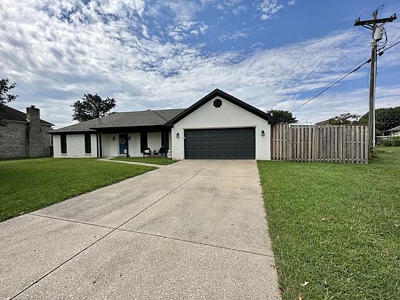 WOW! Take a look at this completely remodeled single-level home! Situated on a large flat lot in a great neighborhood, this beautiful ranch style home offers modern esthetics throughout. Starting with the white brick and stunning black accents as soon as you pull into your driveway! Inside you will find an open-concept living area with a spacious dining room (check out those gorgeous beams!) a functional kitchen with a massive custom island, all overlooking your family room with vaulted ceilings and plenty of lighting! Walking down the hallway you will find 2 adorable bedrooms and a remodeled full bath with gorgeous tile work and tub! Along with your stunning master suite that boasts plenty of space, a walk in closet and another beautiful full bathroom with a walk-in shower! As if that isn't enough, just wait until you step out into your backyard oasis! Offering an 8ft tall privacy fenced, PLENTY of room for the kiddos to run and play, and your very own semi-inground pool with a covered sitting area and bar! WOW! Updated in 2021- flooring, windows, cabinets, appliances, lighting, bathrooms, and more.