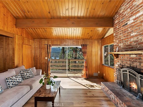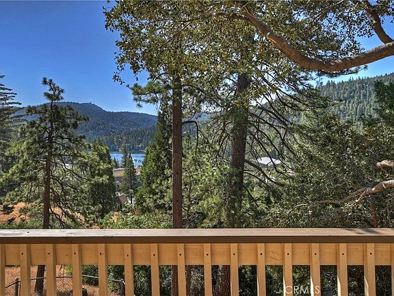 Lakeview Bargain! This Crestline cutie is ready for you to come in and make it your very own. And that view!!! Level parking in front and straight into the main level. Open floor plan with living, dining & kitchen combo. Vaulted ceilings with T&G ceilings & wood paneled walls. Cozy brick fireplace for chilly evenings & access out to the rear deck with those amazing lake & tree views! Watch the fireworks from your very own balcony! Main floor also features a bedroom & a full bathroom. Downstairs are two more large bedrooms and another full bathroom, along with a second deck. Laundry is also in the downstairs bathroom. Washer & Dryer included! There is even a good size fenced yard for your furry friends! Home is in great condition, just needs some updating to make it really shine. Great location for the commuter and an easy walk to town. Enjoy quaint Lake Gregory and all of the restaurants, shops, lake, and fun town events! A must see at this great price!