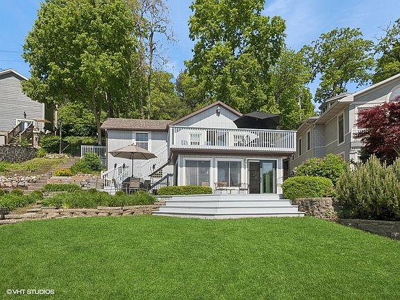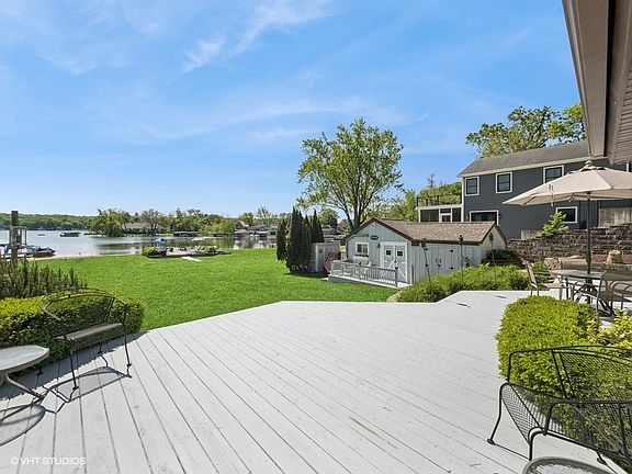 Rarely available Twin Lakes Lake Front property with breathtaking, panoramic lake views! Experience the quintessential lakefront lifestyle in this exceptional hillside home, perfectly positioned to capture stunning vistas of Twin Lakes. This unique property offers the ultimate blend of serene relaxation and vibrant outdoor entertainment, making it an idyllic retreat for families, entertainers, and water enthusiasts alike. Set back from the water's edge, the home boasts an expansive 150 feet of lush yard space - a verdant playground perfect for lawn games, bonfires, and unforgettable gatherings under the open sky. The main level features two comfortable bedrooms and a full bath, providing convenient single-level living. The inviting living room is bathed in natural light and opens gracefully via a slider door to a spacious 14'x22' upper deck. Imagine savoring your morning coffee or unwinding with evening cocktails as you take in the magnificent lake scenery from this elevated vantage point. Descend to the lower level where you'll discover a generously sized family room, offering additional flexible living space for cozy evenings or lively entertainment. This level also includes two additional bedrooms, a practical laundry room, and another full bath. A second large, spacious deck is accessible from the family room via a slider door, creating a seamless connection to the outdoor oasis and providing another fantastic spot for enjoying the lakeside ambiance. Beyond the main residence, the property truly shines with its incredible outdoor amenities. A charming bunk house, complete with double bunk beds, offers extra sleeping quarters for guests or a fun hideaway for kids. Three separate sheds provide ample storage for all your lake toys and outdoor gear. The true highlight is the direct waterfront access, featuring a substantial deck and pier that can comfortably accommodate multiple boats - perfect for effortless docking. Enjoy leisurely days by the water, whether you're swimming from the gravel beachfront or casting a line directly from the deck, with plenty of fishing options to keep you entertained. This property isn't just a home; it's a private lakeside sanctuary waiting to create lasting memories.