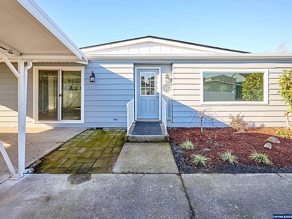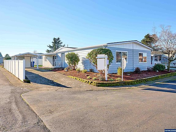 Space rent includes garbage. Seller is a Oregon licensed real estate agent. Fully remodeled including a new HVAC system, new kitchen and bath cabinets, and quartz countertops. All new stainless steel appliances with new under-mount sinks. Split floorplan, vaulted ceilings, primary bedroom, walk-in closet, and primary bath with tub and shower. Corner lot with vinyl perimeter fencing. Vinyl dual pane windows. Carport with storage shed. 55 + gated community with pool and clubhouse.