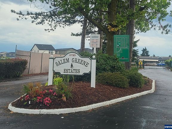 2 bed, 2 bath manufactured home in Salem Greene Estates 55+ gated community. Main bedroom features large closet and walk in shower. Second bedroom can be used as office or guest room. Features vinyl windows and fenced yard with large shed for storage. Home needs some updating. Close to clubhouse and pool. Bring your vision to update this home to its full potential. Park rent is $730 and includes garbage.