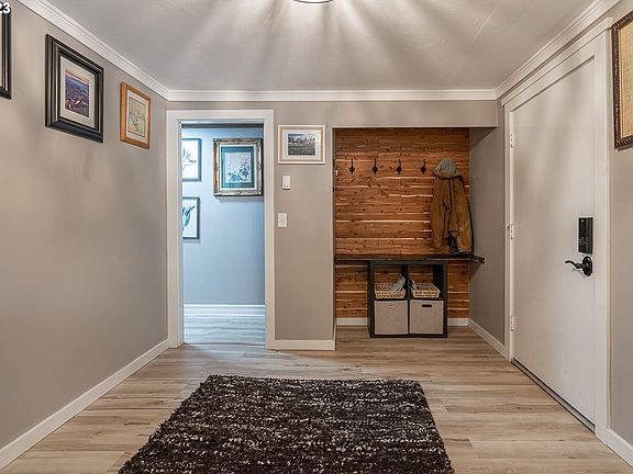 "Completely remodeled Mid Century Modern home with a newer roof, electrical panel, luxury vinyl and carpet flooring. Updated kitchen features new stainless steel appliances, Quartzite and Acacia wood countertops. Main level entry, ample storage, and main floor owner's suite. Dining room opens to upper deck; large lower deck off spacious family room. Full laundry room, energy-efficient windows, ductless AC/Heat units, and fireplaces. Easy-care yard with fire pit, mature trees, wildlife, and woodland views. Walk to shops, parks, and schools. Timeless style meets modern comfort."