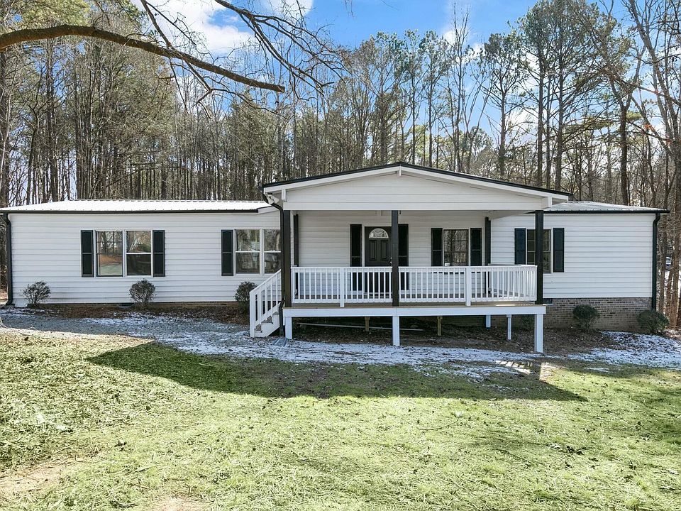 Charming 3 bed and 2.5 bath with a flex room on just over an acre of clear, open land located only minutes from US-1 Hwy and 20 minutes from Apex .This freshly painted gem boasts a sleek black metal roof, with a expansive front porch and a large deck to enjoy all seasons. The spacious living area features durable laminated floors, with a cozy wood-burning fireplace, perfect for relaxing evenings. Kitchen offers ample space and beautiful wood cabinets. The owner's suite bathroom has been fully remodeld. New HVAC With plenty of space indoors and out, this property offers endless possibilities for confortable living and entertaining!