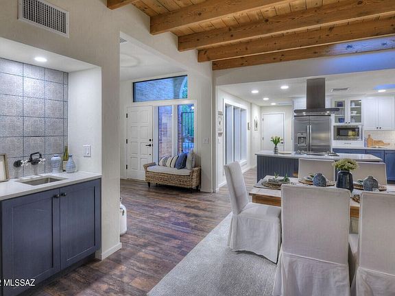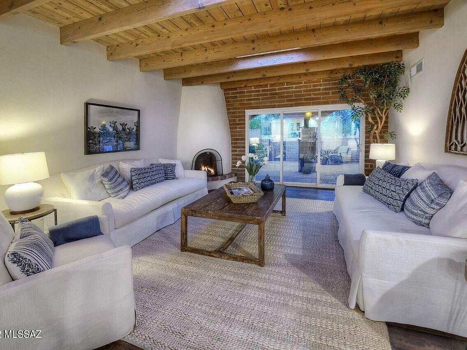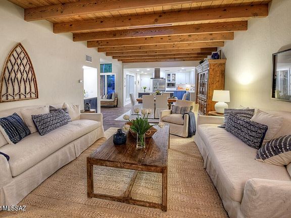 Reinvented with an understanding of what an adobe vivienda should feel like. Charming, gracious, and a tad unique plus sitting in beautiful gated Skyline CCWood beams, glass doors, a soft pallette of slate blue and white, well ,,,,, it just works.The kitchen was designed to make certain the chef is always a part of what is going on. The kind of place that is so invititng the kitchen island has seating!The living spaces just segue from one to the next so seamlessly. A master suite that opens to the patio is large with a bathroom so whimsical you likely will want to leave the door open! There is so much to love, but the patio has to be close to the top. I could be wrong, but this one is special and it won't wait around