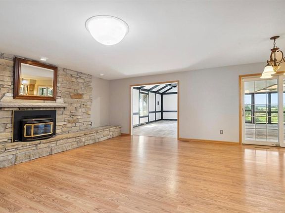 Nestled on 1.29 acres, this energy-efficient geothermal home is truly one of a kind. A thoughtfully designed 2-story residence with a massive 4+ car garage, it features a finished upper level in the detached garage offering nearly 600 sq. ft. of flexible space, all fully heated and cooled. The main level invites you in with a stunning 4-seasons room, a spacious screened-in porch, and an open-concept kitchen complete with a large walk-in pantry. There are dual living areas, a formal dining space, a primary suite with an adjoining office, and a generously sized laundry room.