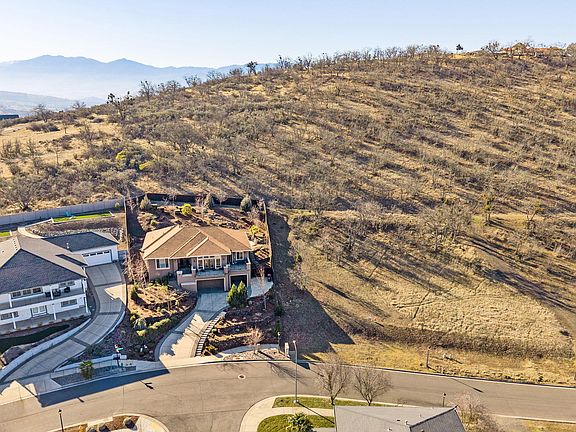 East Medford beautiful home w/fenced .34 acre lot w/amazing landscaping! Upgrades throughout w/a great floorplan. 3 bedrooms plus an office w/French door to a covered patio and many patios to enjoy the outdoors w/views of the City and surrounding mountains. All 3 bathrooms, kitchen and laundry room have granite counters and tile floors. Many hardwood floors, lg open kitchen w/island, black s/s appliances, dbl ovens, gas cooktop, 5 door rerfrige + separate wine refrige. Lg windows and high ceilings. Dbl door entry w/marble inlayed wood floor, great room w/fireplace and built ins. 2 primary suites, main suite w/dbl sinks, tile shower, soaking tub, water closet and walk in closet. Crown molding and lg baseboards. Single level home w/elevator to a 5 car garage!