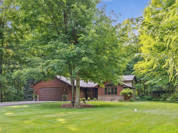 One acre private lot nestled in the coveted Berning Wood Development! This lovely home features 3 bedrooms and three bathrooms. Well maintained on a private lot. Main level living room with gas fireplace. Vaulted ceiling and large windows. Large and open kitchen featuring gas oven and stainless steel appliances attached to eat-in dining room. Solid wood doors. Upper level features two bedrooms including the Primary Suite with 3/4 bathroom and walk-in closet. Lower level has an additional bedroom, family room and bathroom. New roof, siding and skylight in 2022. Washer and dryer, and garage fridge will stay. Heated attached garage. 12x12 shed provides extra storage space! Only available due to relocation, come see this home today!