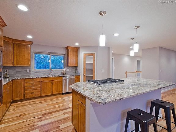 Don't miss this fabulous completely remodeled rancher on a private 1/3 acre treed lot. Shows beautifully with 5 inch hickory plank floors, brand new kitchen and baths, all new paint, doors, baseboards, you name it. Open floor plan, enormous rooms and large windows make this home show light and bright. Awesome kitchen with a huge island, quality appliances, gorgeous slab granite counter tops. Master bedroom has walk in closet and attached 4 piece bath. The family room has a full wall slate fireplace. The basement rec room has a brand new wet bar and is perfect for large screen TV, pool table etc. Enjoy summer evenings on your front deck surrounded by trees and listen the the water feature below. Come check out this unique property.
