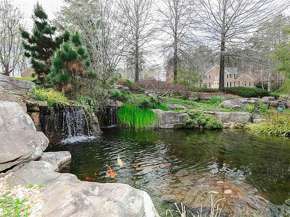Exquisite, all stone custom home on park-like landscaped lot w/ multiple waterfalls & ponds makes this an oasis. Designed for entertaining! Curved staircase in foyer, 5 fireplaces, 2-story living room w built-ins, dining room seats 12, enormous kitchen w granite & solid cherry cabinets, spectacular master suite w balcony & domed ceiling. Bsmt has 2nd kitchen, theater, hidden secret room, 1/2 bath, rec room, enclosed patio. Several outdoor seating areas incl covered deck, covered patio &gazebo area. Coffered ceilings in several rooms. Lake, swim & tennis neighborhood