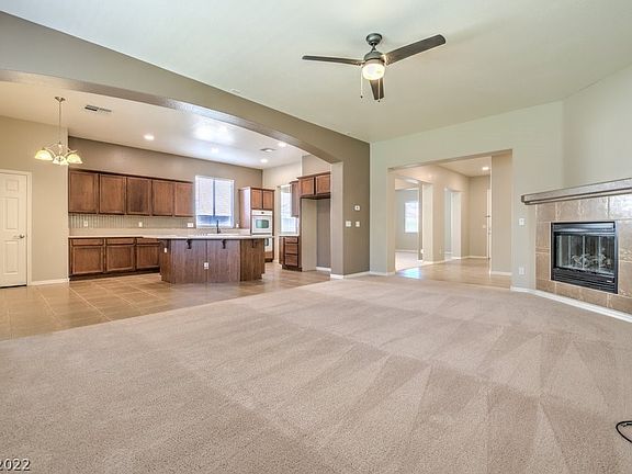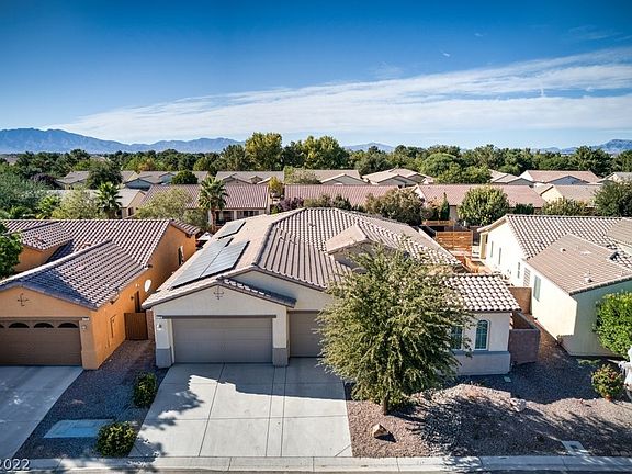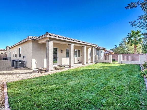 Private courtyard, casita, solar, soaring ceilings, & open kitchen w/large island. Grand entry, formal sitting, formal dining, & fireplace in great room. Kitchen boasts high tile backsplash, double ovens, cooktop on island, eating nook, pantry, breakfast bar, & large tile flooring. Primary suite has sitting nook, accent windows, walk-in shower, tub, dual sinks, & walk-in closet. Casita has walk-in shower & walk-in closet. 4 bed, 4 bath, 3-car garage. Utility room has sink and built-in + shelf, fans and blinds installed, 1/2 bath off great room, & yard is cross fenced w/separate grassy area for pets! Bella Sera is within the golf community of Mountain Falls! 18-hole golf course, driving range, pro shop, restaurant on the pond, 3 pools, spa, full gym, fitness studio, billiard lounge, & RV parking option! Valley has 3 golf courses, 3 wineries, gaming, endless trails for hiking/biking/riding/Jeep/ATV adventures, & just 45 min from Las Vegas and international airport!