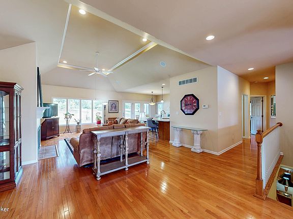 Fabulous 1 owner 3 bedroom/ 3 bath open floor plan ranch with a finished basement in the Estates of Razor Creek! End of cul de sac, across the street from a park like setting, and a very private backyard! Beautiful hardwood floors, neutral paint, large updated kitchen with granite, large screened in porch and outdoor patio to take in the views! Formal dining room, new high end Core Tec flooring in primary bedroom, and an additional 1450 sq feet finished in basement with a full bath, full flex room with closet (4th bedroom), large family room with pre wired surround sound capability, beautiful cabinetry in kitchen area, and tons of storage space.