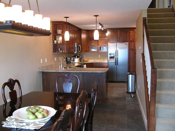 Beautiful townhouse w/tons of upgrades. Kitchen/dining has custom alder cabinets, granite countertops, slate floor, & upgraded lighting throughout. Living rm has vaulted ceilings, gas fireplace w/glass mosaic surround. Upgraded trim package w/beautiful poplar doors. Mstr bdrm has walk-in closet & mstr bath. Great neighborhood on bike path! Bsmnt under construction. Will add 1bed/1bath/family rm.