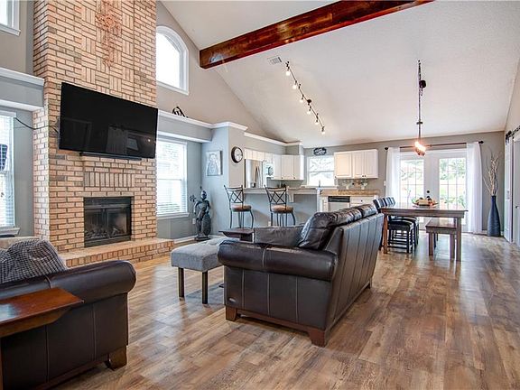 - Ceiling Fans(s), High Ceiling(s), Living Room/Dining Room Combo, Vaulted Ceiling(s), Crown Molding, Window Treatments, Open Floorplan, Solid Surface Counters, Solid Wood Cabinets, Eating Space In Kitchen, Kitchen/Family Room Combo
