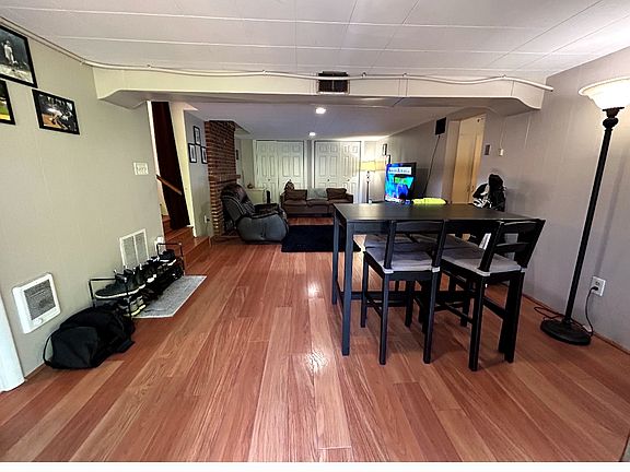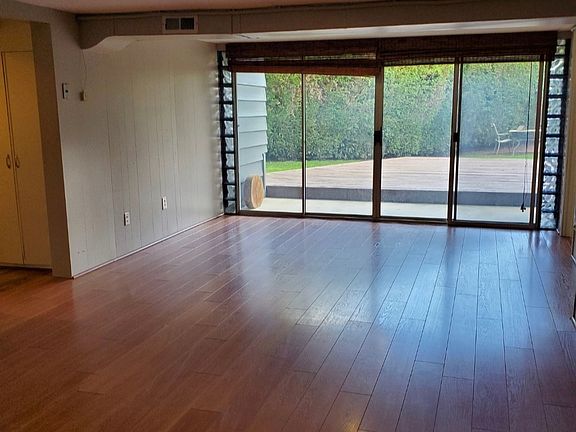 Private entrance in spacious basement apartment which looks out to tree lined backyard with firepit and gazebo. Apartment entrance with covered patio and wall of windows with oversized patio door. One bedroom with carpet. Hardwood floors featured in open airy space for livingroom and dining room. Modern kitchen with separate laundry off of the kitchen. Newly renovated bathroom. no lease, this is month to month. requires $1,495. 1st month rent, $1,495. last month and $500. security deposit