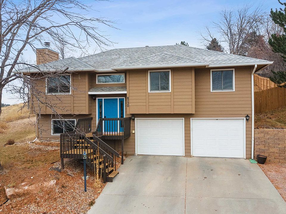 Listed by Cody Brown, Engel & Voelkers Black Hills, 402-910-3553. Stop what you are doing and check this one out! This single-family home, located on the Southwest side of Rapid City features 4 bedrooms, three bathrooms and a two-car attached garage with workshop area! When you walk in the front door, you will go up a few steps to an open concept living room with a gas fireplace, kitchen with stainless steel appliances and dining room area. The upper level also includes three bedrooms, one of which is the primary bedroom with the primary bathroom. The lower level has a laundry room area, a 4th bedroom with a walk-in closet and the third bathroom. The backyard area is like a real-life dream. Walk out of the sliding glass doors off the dining room to your awaiting backyard paradise. Backyard includes a deck and gazebo area with a beautiful view of the city and trees and is fully fenced in with privacy fencing. There is a garden area and some juvenile fruit trees (apple and pear). This home has easy access to parks and trails scattered throughout this area of town. An extra parking pad and a new retaining wall were recently added. Many new upgrades and features throughout the home!