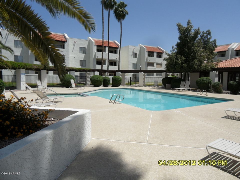 2 BEDROOM 2 BATH CONDO. Right in the center of Glendale. Close to shopping, public transportation, and schools. Directly in front of the large sparkling blue swimming pool and club house. Ceiling fans in the bedrooms. Storage area off patio. ONE COVERED CARPORT PARKING SPACE AND ONE UNCOVERED PARKING SPACE BOTH ASSIGNED # 27.