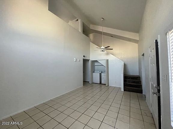 Nice 2 bedrooms and 2 bath available now for rent! Home features formal living room with soars ceilings, one bedroom downstairs with the full bath, the second bedroom upstairs with full bath. Laundry washer and dryer are included. Community pool.