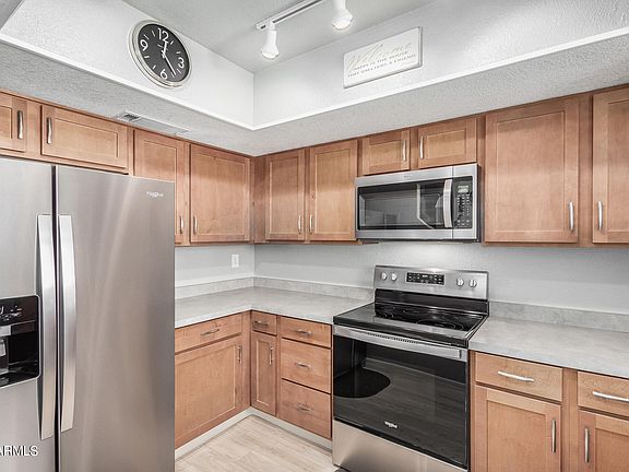 REMODELED and Gorgeous! Move in ready 2-bed, 2-bath Condo at 47th Place! Excellent Location, ground-level offers a delightful open layout, complete w/ newer vinyl flooring, neutral palette, & BRAND NEW stainless steel matching applicances. $10k spent on 2 new sliding dors and windows. The kitchen has newer cabinetry and counters. Fridge, washer, dryer included. 2 Parking spots, 1 covered one not covered. Furniture is available and negotiable. Community amenities includes sparkling pool, spa, & recreation center, Conveniently situated near bus stops, restaurants, shopping, & schools. Welcome to your new AZ Home!