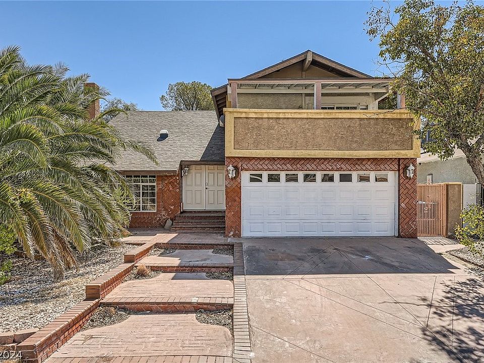 Welcome to character and convenience in this Las Vegas home! Located in a peaceful cul-de-sac, this unique property boasts a spacious yard with shed, walking trail behind with gate access, extended covered patio with ample entertaining space perfect for outdoor gatherings. The exterior offers two balconies, an easy to maintain yard and a brand new roof, replaced in June 2024! Inside, you'll find updated stainless steel appliances in the kitchen, hard surface floors throughout, the loft area upstairs has a door and can be used as a home office or 4th bedroom, plus a lovely fireplace in the front living space. This active HOA is currently improving the community!! Freshly resurfaced pool, grassy dog park, updated landscaping with two tennis courts and pickle ball on the way. Situated near shopping amenities, this property offers easy access to everything, providing the ideal balance of function and charm.