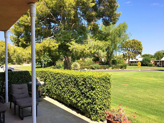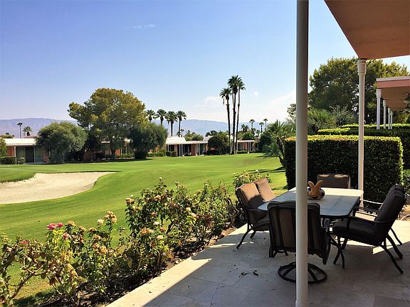 This highly upgraded 3Br/3Ba home is a beautiful example of sophisticated elegance. Remodeled in traditional style with beautiful desert colors, this wonderful home offers large rooms, towering ceilings, floor to ceiling walls of glass in all rooms and a spacious living room with a custom fireplace. Superb corner location with great light and morning sun on the back patio, fabulous golf course and mountain views, and lots of sun on the front courtyard. The gourmet kitchen balances utility and design, with lots of counter space, medium tone custom wood cabinets, slab granite countertops, newer appliances and a breakfast bar that opens to the formal dining room. Owner's Suite overlooks back patio with the golf course view and provides a generous walk-in closet space with custom built-ins. Well appointed en-suite bathroom features granite countertop, glass walk-in shower and designer fixtures. Both equally spacious Guest Suites feature walk-in closets, remodeled bathrooms and open to the front courtyard. Raw travertine floors, crown moldings, plantation shutters, gated entry with flagstone flooring, ceiling fans and recessed lighting in all rooms complete this wonderful home. Marrakesh amenities include 18 hole executive golf course, 14 pools and spas, a state of the art exercise facility, a club house with a fine dining and a very active social lifestyle. Located just minutes away from the famous El Paseo Drive with world class shopping, art galleries and restaurant.