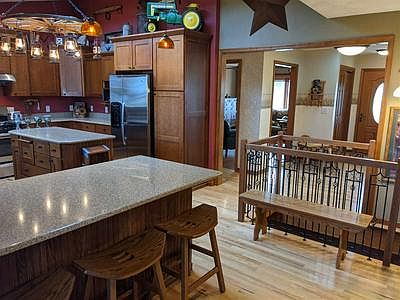 Better than new & larger than it appears! Rm 4 everyone & in law, family, guests, wk from hm, bounce back kids. Just 3mi from great Stillman Valley Schools w low tax rates. Open kit new 2006 w quartz counters, SS appliances, vaulted ceiling, skylights, 6' breakfast bar, 5' island, pantry cabinet, pantry closet, & breakfast area w door to 30' all maintenance free deck. MF features hdwd flrs, spacious dining & loving rm both w bay windows, 1/2 bth off the garage, updated hall full bth, 2 bdrs plus master suite. Mstr w door to deck & great views. LL new 2008 has family room w surround sound, game room w heated floors & walkout to 30'x18' patio, bdr , full bth w large closet, 2nd kitchen, laundry, bonus rm & storage rm. Gar is oversized 2 car plus workshop area w full set of cabinets, plus pull down attic stair & 2nd basement stairs. Metal bldg 90' x 40'; 60'x40' gravel floor insulated w pull down attic stairs & 16'x8' overhead door. Plus 30' x 40' section w 4-12'x12' stalls w water.