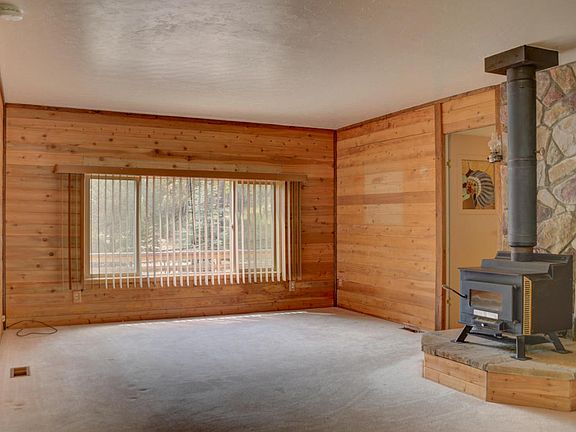 Amazing opportunity to own a little home in the pines with a detached four car garage and large lot! Older home has been well maintained and upgraded in past several years. 2 bedrooms and 2 full baths with laundry and open living room with fireplace. Cute as can be. @ car detached garage also has attached one car carport and additional storage. Corner lot provides access off Deer Trail or Manzanita.