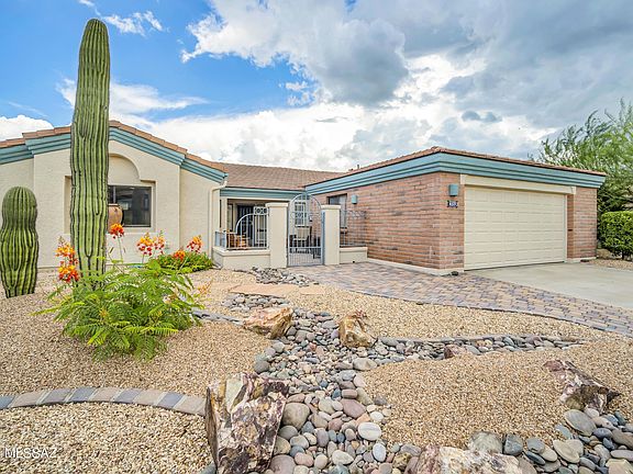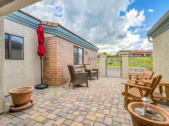 Dead-on views of the Santa Ritas greet you as you enter this spectacular Montana floor plan! The instant curb appeal will intrigue you; lovely paver courtyard entrance will delight you & with only one step inside, you'll be lost in the sweeping views of the ever-changing Santa Rita mountain range laid before you. Owners have undertaken an extensive $150,000 transformation making it into the masterpiece it is today. In 8/2020 they purchased two new dual zone HVACs; in 2018 re-roof; $26,000 in Renewal by Anderson windows; took out the polybutylene and re-piped the house; $25,000 in gorgeous 20'' tiles throughout except for the Owners Suite, which has extra plush neutral carpet; remodeled the kitchen, owners suite bath and guest bath; added pavers to the side of the driveway into the