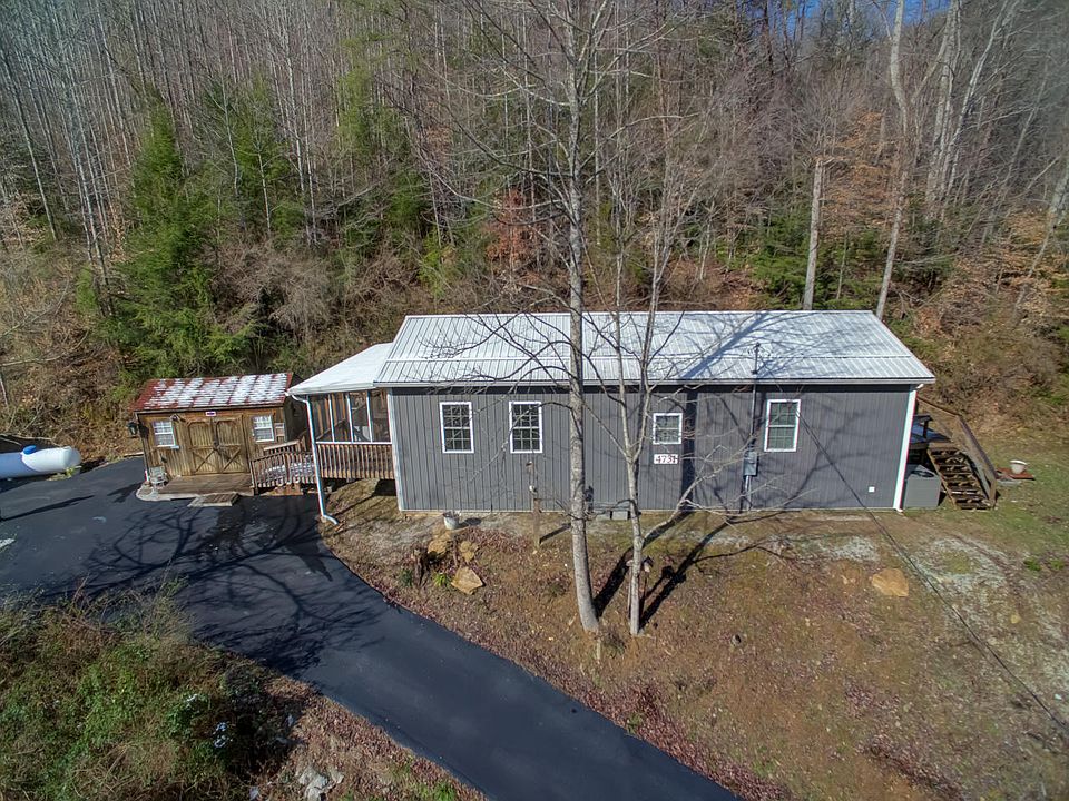 This gorgeous custom home is nestled in the mountains near a peaceful stream you can hear from the screened porch! Imagine coffee, privacy, & the mountains surrounding first thing each morning from your screened porch! There is a an abundance of wildlife in this location so bring your binoculars! The home includes both covered porch & screened porch, also a large back deck, newly paved driveway & carport. Additional features include open floor plan, perfect for entertaining, gleaming hardwood floors, granite countertops. This home is ideal for year-round living or vacation home getaway. Located approx. a mile from Stinking Creek access & Ride Royal Blue, minutes from shopping, medical care, schools, & restaurants. Complete with storage building (previously used as a tiny house), this home