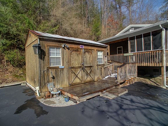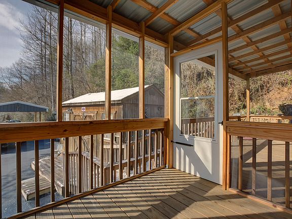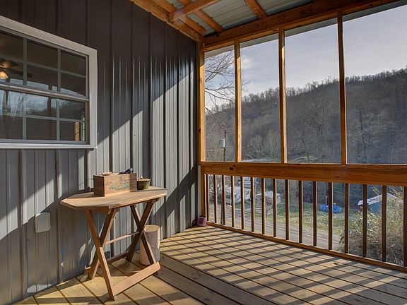 This gorgeous custom home is nestled in the mountains near a peaceful stream you can hear from the screened porch! Imagine coffee, privacy, & the mountains surrounding first thing each morning from your screened porch! There is a an abundance of wildlife in this location so bring your binoculars! The home includes both covered porch & screened porch, also a large back deck, newly paved driveway & carport. Additional features include open floor plan, perfect for entertaining, gleaming hardwood floors, granite countertops. This home is ideal for year-round living or vacation home getaway. Located approx. a mile from Stinking Creek access & Ride Royal Blue, minutes from shopping, medical care, schools, & restaurants. Complete with storage building (previously used as a tiny house), this home