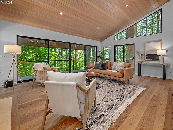 Nestled among the trees on a generous 1.53 acre lot, this mid-century marvel has been meticulously renovated to offer the perfect blend of modern comfort and serene tranquility. Just minutes from the action of city, this home provides a peaceful retreat with total privacy. Extensive remodel includes an open concept kitchen, all new decks, new oak floors, updated bathrooms, new sliding doors and recently updated systems- seamlessly blending contemporary convenience with mid-century detail and design. Step inside to discover soaring high ceilings that create an airy, spacious feel throughout. Multiple decks extend from nearly every room, offering idyllic spots to relax and enjoy the natural surroundings. Whether you seek a quiet sanctuary or an entertainer's dream, this renovated mid-century gem promises a lifestyle of style and comfort in a prime, secluded location. Ask about adjacent available lot. [Home Energy Score = 1. HES Report at https://rpt.greenbuildingregistry.com/hes/OR10230956]