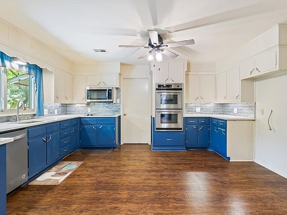 The home features 2,808 square feet of thoughtfully designed living space, including three spacious bedrooms, three full bathrooms, and two inviting living areas. A flexible home office provides the option to easily convert into a fourth bedroom, making this layout ideal for families, remote work, or multi-generational living. The kitchen was renovated in 2021 with updated countertops and finishes, designed for both everyday living and entertaining. A standout feature is the oversized walk-in pantry, offering exceptional storage and prep space for a true chef’s kitchen experience.