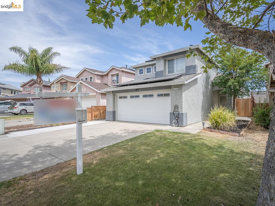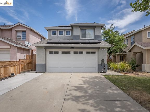 Desired California Dawn home....charming and beautifully updated. It offers a flowing, open floor plan. The cozy fireplace and vaulted ceilings in the family room creates inviting space for all to gather. The open kitchen and dining area are functional and set up perfectly for all gatherings. Select the desired amount of abundant natural light from blind-covered windows. Upstairs offers two generously sized bedrooms and a primary suite. Enjoy the backyard that has been impressively renovated to include a partially covered, multi-level deck with BBQ kitchen area, perfect for continued entertainment. Expanded driveway. Paid solar panels offer an amazing energy savings. Quiet, newly installed garage door opener. Updates everywhere!! This home has it all.