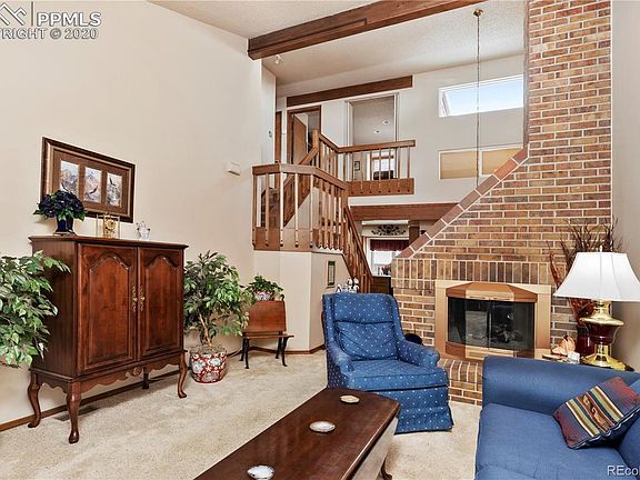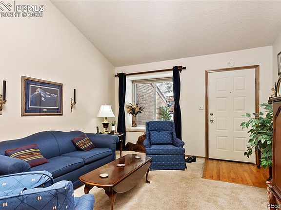 This beautiful townhome with 4 beds, 3 baths and attached 2 car garage is close to schools, shopping and Powers Blvd. Nothing to do here but move in. Main level living with no steps to climb to access the master bedroom and laundry. Super clean and spacious with a formal living room highlighted by soaring ceilings and an attractive gas brick fireplace. The living room flows into the cozy dining room with tile flooring. The kitchen boasts tile countertops and wood flooring with all newer black appliances included. A lovely atrium/sunroom with vaulted ceiling, brick flooring, new windows and exterior door is adjacent to the dining room. You will appreciate the main level laundry area. Completing the main level is a spacious master suite with a full bath and walk-in closet. Step out from the sunroom to the wonderful back deck where you can relax or entertain while enjoying our Colorado weather. The upper level has one bedroom with an attached full bath plus a second bedroom, which is currently used as an office. The basement level offers a large family room, 3/4 bath and a 4th bedroom, currently used for storage. The furnace with A/C is only a few years old and is in good condition. This townhome has it all with main level living, bedrooms on each level and an attached garage. The well-maintained complex includes a pool, clubhouse, spa and open green space. Don't miss out on this wonderful property. See it before it's gone!