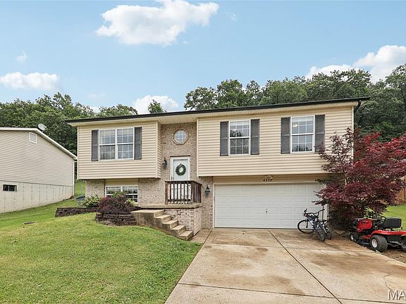 Welcome to 4732 Land Rush, a charming split foyer home in a great neighborhood in the sought-after Seckman School District. This 3-bedroom, 2-bathroom home has been freshly painted and features a BRAND NEW roof and gutters completed in May 2025! The spacious primary bedroom includes its own private full bath, while the kitchen and separate dining area provide a perfect space for everyday living and entertaining. Mature trees in the backyard offer privacy and summer shade. With a 2-car garage and a welcoming layout, this home is a wonderful starter option in a friendly community. Don’t miss your opportunity to settle into comfort and convenience in a location you’ll love! ** Offers due by 10pm Sunday June 8