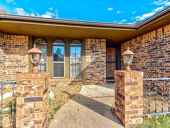 New Roof in 2022. This delightful full brick home on a low-traffic street has 2 living areas, and a nice covered patio. The front of the home has an inviting courtyard, adding to the curb appeal. Wood-look flooring flows through the formal living room, den, dining room, and the hallway leading to the bedrooms. Primary bedroom is generous in size, has a walk-in closet, and a sliding door leading to covered patio. Primary bath has double sink, and a step-in shower. Cozy corner fireplace in den has gas logs. The dining area is spacious, with a built-in serving buffet, with display cabinets above. All appliances, including washer and dryer, remain with home. Garage has very sturdy storage shelving, which remains. Back patio is fully covered, and large enough for nice patio furniture and grills. Backyard is terraced, and fully fenced.