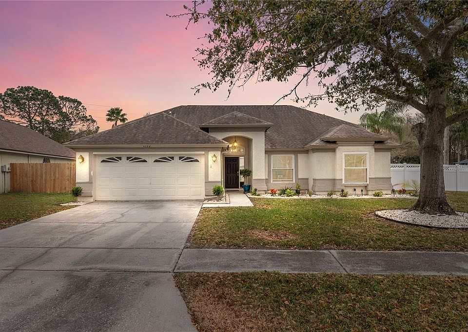Welcome to your dream home! This stunning pool residence offers a blend of elegance and functionality, boasting three bedrooms, two bathrooms and captivating design features throughout. Step into the heart of the home—a recently remodeled kitchen that exudes modern sophistication. Adorned with stainless steel appliances, exquisite high-end cabinets, and luxurious granite countertops, the kitchen is a culinary haven. Gather around the center island/breakfast bar for casual meals or entertaining guests in style. Entertain with ease in the elegant formal dining room, enhanced by custom built-in shelving—a perfect backdrop for memorable gatherings. Retreat to the luxurious master suite, where relaxation awaits. Indulge in the spa-style ensuite bath, featuring dual vanities, a separate shower, and a sumptuous soaking tub—a sanctuary for ultimate relaxation. Step outside to your own private oasis, where a sparkling pool beckons for endless enjoyment. The pool, resurfaced in 2017, is surrounded by a fully fenced yard on nearly a quarter-acre lot, enveloped by lush landscaping. Additional outdoor amenities include a charming patio and a custom utility shed with electricity—a versatile space for storage or hobbies. This home is thoughtfully appointed with thermal hurricane windows and fresh paint throughout, ensuring both comfort and style. With the roof and hot water heater installed in 2016, and HVAC in 2017, peace of mind comes standard. Conveniently located in Mill Run, just off Trouble Creek Road, this residence offers easy access to downtown NPR, hospitals, medical offices, and the vibrant shopping and dining options of Trinity and US-19. Its proximity to Hwy 54 and its central location make commuting a breeze, with quick access to Hillsborough and Pinellas County airports, as well as popular tourist and shopping destinations. Don't miss the opportunity to make this exceptional home yours. Schedule your viewing today and experience luxury living at its finest!