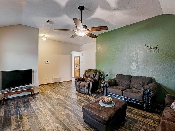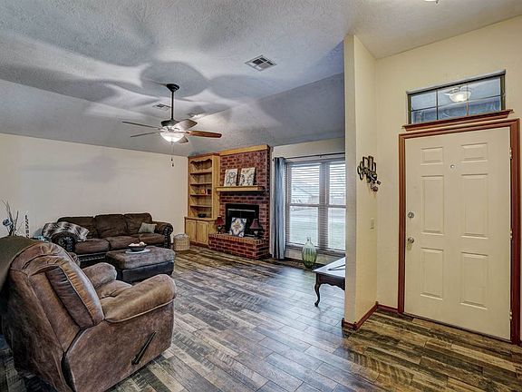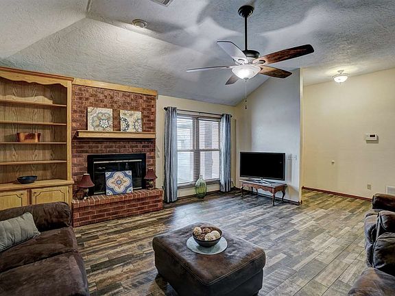 Wonderful updated home, all new floor coverings, paint, new stainless steel appliances, new countertops. Huge open living area, beautiful brick fireplace, high ceilings, new wood looking tile floors in living, hall, 2 of the bedrooms, new carpet in master bedroom. Secluded master bedroom, updated master bath, new tub surroundings. Update kitchen, nice cabinets, all new knobs & fixtures, large dining area. Door to covered patio, wood fenced in yard, extra concrete slab for open patio.
