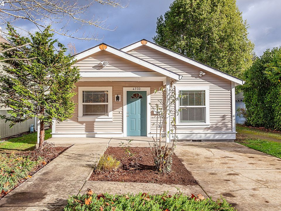 Cute beyond belief! This charming one-level Bungalow was built in 2001 and renovated in 2024. Enter into the spacious living room with vaulted ceilings and easy to maintain woodgrain laminated floors throughout. Prepare meals in your kitchen containing new cabinets, sink, countertops, dishwasher and free standing range. Dine in the cozy eating area or on those beautiful Portland evenings serve your guests on the beautiful composite deck outside the backdoor. The bedrooms are quiet with wall to wall carpet. The beautiful woodgrain laminate flooring continues into the bathroom that has also been updated with a new countertop, sink and toilet. Wheel chair Accessible!! NEW Roof, Listing Agent is related to Seller. [Home Energy Score = 7. HES Report at https://rpt.greenbuildingregistry.com/hes/OR10234369]