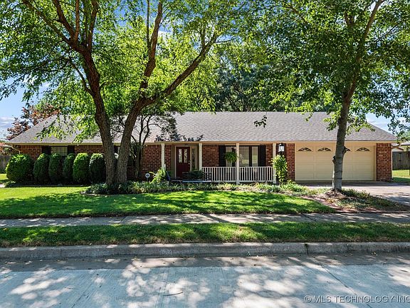 This immaculate, one owner home, will have you pinching yourself - but don't worry, you're not dreaming! No need to choose between the exceptional home you're wanting, and the fabulous yard you're wishing for- you get both! Check out the primary bedroom, which is unexpected, and STUNNING! This home offers a brand new roof and gutters Sept. 2024, New living room carpet Oct. 2024. Other features include tankless Bosch water heaters, high quality Pella windows. Gorgeous kitchen is so tasteful! Induction oven, Bosch dishwasher, stainless refrigerator. Beautiful wood cabinets, with every nook and cranny so mindfully detailed, from the pull-outs in the pantry cabinet, to the double jointed doors in the corners that maximize space. Corian countertop, and several glass front cabinets just right for displaying your favorite treasures. Next door, the utility room has been outfitted with beautiful matching cabinetry, (such a nice flow!) and space created for a second refrigerator! Spacious dining with bay window overlooks the backyard. Large den has gas log fireplace with classy black and glass doors, and lovely custom wood mantle, flanked by floor to ceiling windows. You'll find hardwood parquet flooring throughout the bedroom wing, including all bedrooms and closets. Beautiful updates in hall bath. Original primary bedroom was enlarged significantly, with tray ceiling, and floor to ceiling windows and patio door, all with integrated blinds. The surprises continue, with the enormous walk-in closet, and the separate dressing vanity. Luxury primary bath is a dream, with jetted tub, double sinks, walk in shower with glass door and built in seat. Venture outside, and first, you'll notice the double covered patios, connected with curved brick walkways, with paths to the park-like back yard. Dreaming of a yard in town that is large enough for a separated and fenced garden, and accessible by vehicle on one side? This is ALL that and more! Large storage building, fenced yard.
