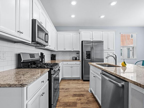 - Features: Breakfast Bar, Kitchen Island, Pantry, Stainless Steel Appliances, Solid Surface Counters