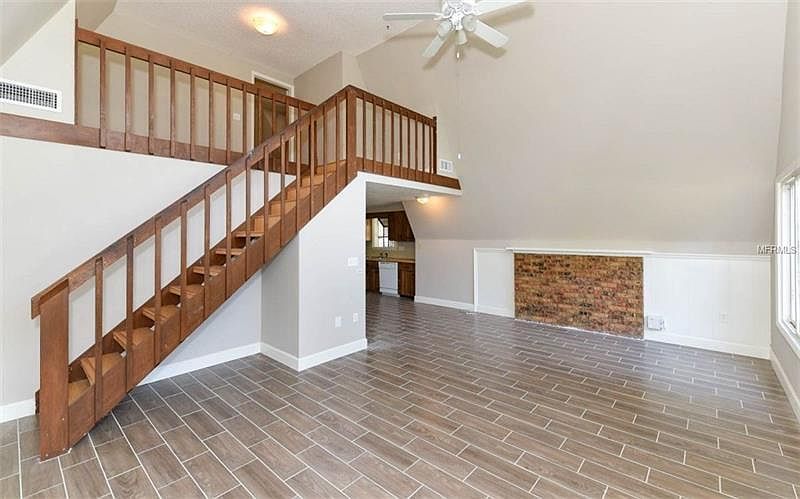 The house has been totally redone. New floors, new paint inside and out, Large Master bedroom , upstairs, with walkin closet and - with big deck overlooking big fenced in back yard. Large downstairs bedroom. Great room has 5 foot vaulted ceiling - very open and bright. Kitchen includes frig, stove, dishwasher and garbage disposal - washer and dryer included.