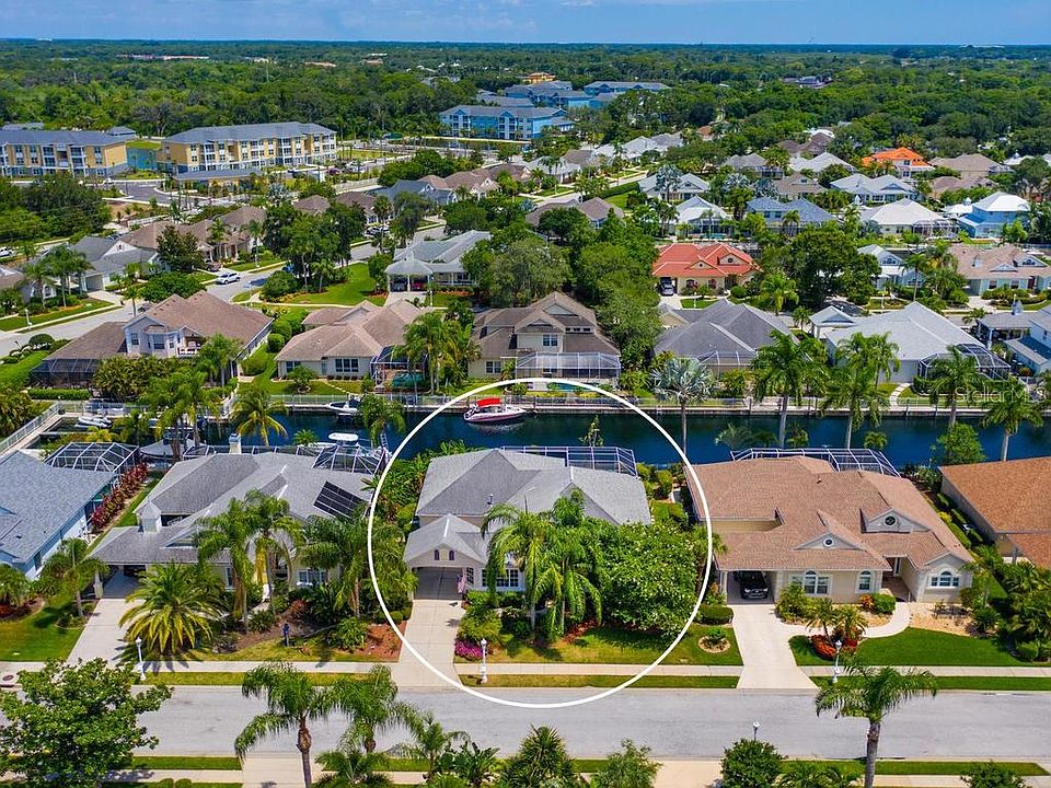 A Home for your Boat, this beautiful waterfront home sits directly on a private freshwater canal offering a Southern exposure. Imagine your own private boat dock 220v/50 AMP service with access to Intracoastal waterways and the Gulf of Mexico. Spend lazy afternoons poolside in the sparkling aqua waters of your HTD pool/spa sipping your favorite libation while your four-legged friends play safely in the yard protected by invisible dog fence. With 2,362 Sq. Ft. of spacious living, this home boasts 3 bedrooms + den and 2.5 baths. The open floor plan makes it ideal for entertaining. All rooms flow seamlessly. This lovely home offers a 2 sided dry wine bar with a granite top that makes a dramatic focal point between dining and family room. Vanishing walls of glass allow the interior spaces to flow onto the outdoor living area with pavered Lanai overlooking the water. Sunbathe on your 10 x 26 deck extension. Any cook would welcome the chance to serve up a feast in the open step saving kitchen with 42" cabinets, granite counters, newer stainless steel appliances that combines a spacious family room and cafe area. Noteworthy improvements and features include interior, exterior paint 2015, crown moldings, dry bar, surround sound w/remote infrared receiver, security system. These energy-conscious owners installed Tankless Gas Hot water heater 2019. Attic insulated with additional heat barrier, A/C 13 SEER 2010, coiler replaced 2017. Pool pump replaced 2019. Hurricane Rated garage door and storm shutters for your peace of mind. Car buffs will enjoy the EXTRA DEEP 2 car garage. We invite you to become part of this amazing Boating Community, with tennis court, children's playground, nature trails, canoe & kayaking, plus an array of social activities and groups. Ideal location close to 3 major airports, world-class shopping, fine dining, sporting events & Gulf Coasts finest sugary white beaches. Low HOA fees and NO CDD fees. Experience the Boating Lifestyle at the Inlets, a Premier Boating Community on the Banks of the Manatee River.!!! One Year Home Warranty paid thru Feb 2021.