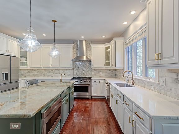 Stately executive home with high end upgrades in exceptional location. Elegant curved staircase greets you in the foyer. First floor office, bathroom and conservatory. Two story family room drenched in natural light. Gorgeous gourmet kitchen with professional gas stove, high level granite & quartz countertops, and built-in drawer microwave. Custom pantry boasts huge storage space and an abundance of cabinets. Spacious owner's suite, with separate sitting area, features luxurious bathroom, walk-in shower with dual shower heads, dual vanities, and two walk in custom designed closets. Large secondary bedrooms all with direct access to a bathroom. Finished basement in modern farmhouse design with a decorative ceiling, tiled accent wall, wet bar with cabinets, quartz countertop, and custom designed entertainment center. Large bathroom with walk-in shower and six separate storage areas top off this prime entertainment space. 3 car side-entry garage with long driveway. Sprawling backyard backs to wooded area on a cul-de-sac. Immaculate, one-of-a-kind home! No city taxes!